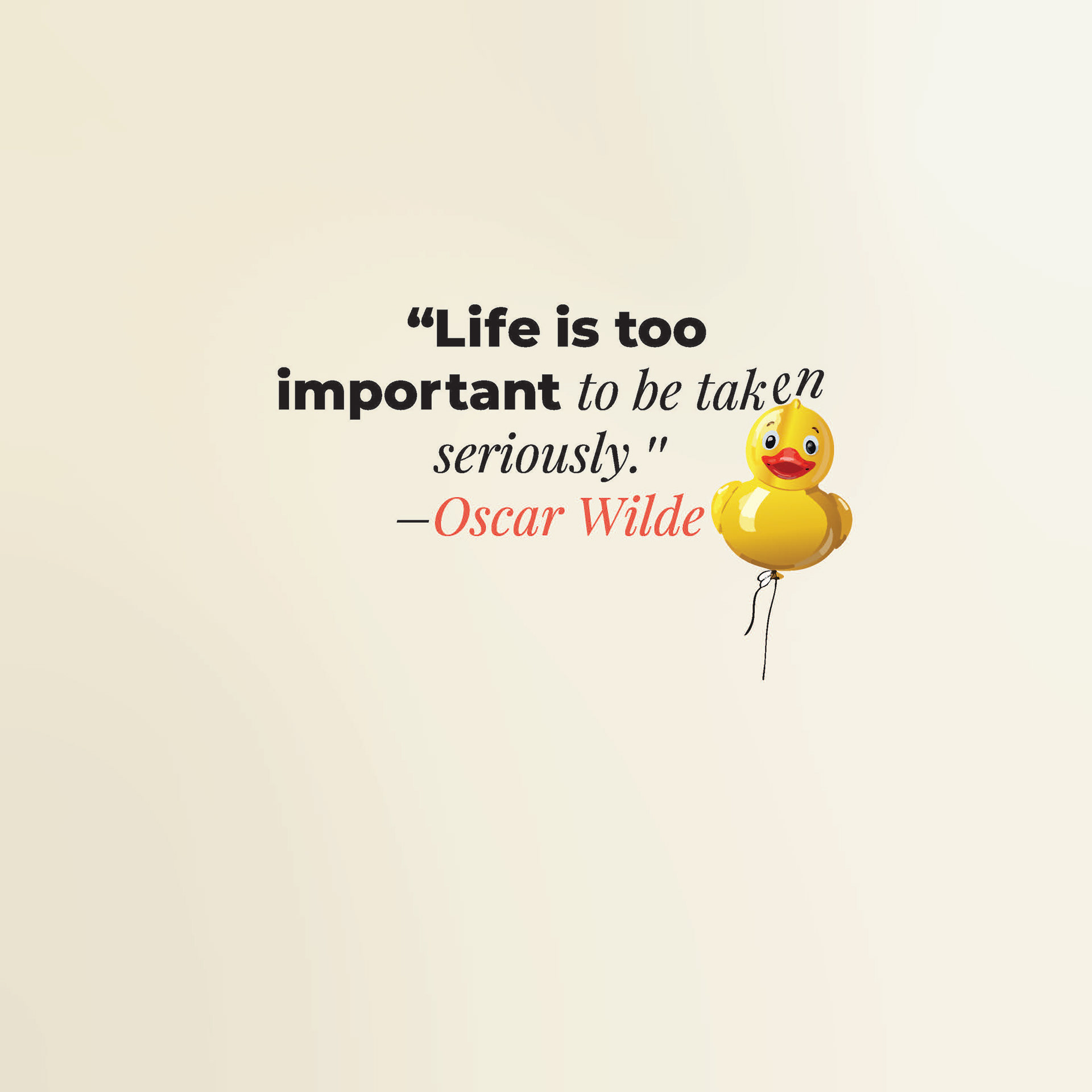 One of my favorite quotes is, “Life is too important to be taken seriously” by Oscar Wilde. The design pairs two complementary typefaces, with orange used to highlight the author’s name. To add a playful visual element, I incorporated an AI-generated graphic of a duck balloon drifting upward, gently bumping into the quote as it rises. This combination of typography and imagery creates a lighthearted yet thoughtful composition that reflects the spirit of Wilde’s words. This is a combination of using graphic design elements learned in combination with emerging technologies.