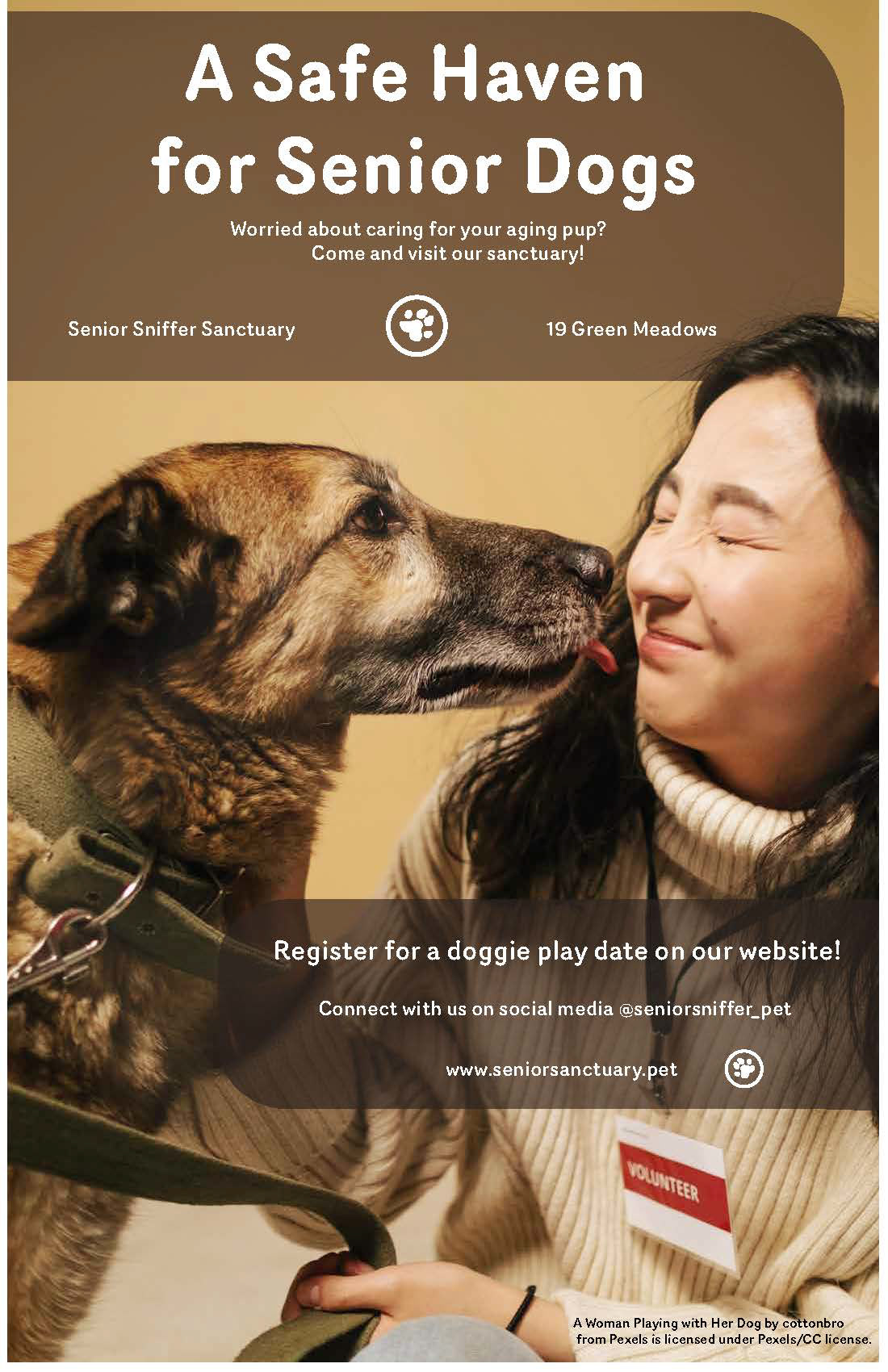 The purpose of this design artifact is to advertise a dog sitting service for older dogs. The audience is anybody that has a family pet that needs extra attention such as with medication. My design artifact needed